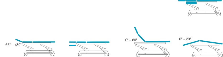 - Prévient toute rotation gênante, la table à 3 plans permet d’installer le patient en position couchée, assise et