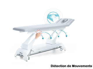 Détection de mouvement "SMD" ( ref. 195030 / 684,00 € TTC ) - le système de la détection de mouvement sécurisée est conçu pour prévenir tout risque de coincement des membres du patient ou du thérapeute dans le mécanisme de la table, entièrement automatique il intervient lors du réglage de la hauteur en interdisant tout mouvement d’abaissement de la table en cas de contact entre quiconque et le bâti supérieur ou l’un des bras de levage mobiles.